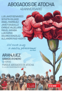 49º aniversario del asesinato de los Abogados de Atocha, que tendrá lugar 24 de enero a las 11:30 horas, en el Auditorio Marcelino Camacho.