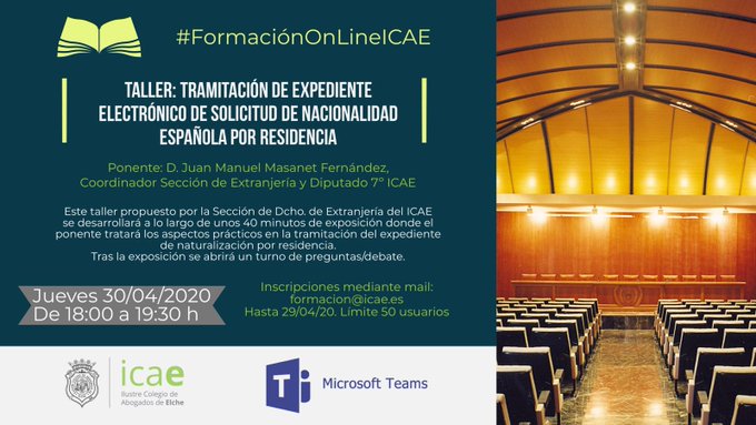Formación on line «Tramitación de expediente electrónico de solicitud de nacionalidad española por residencia, en el Colegio de Abogados de Elche.