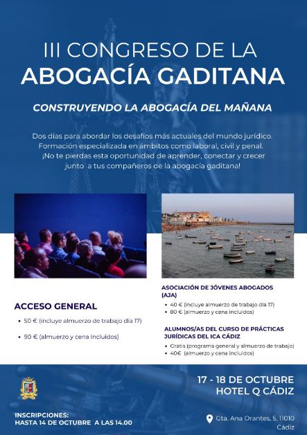 El III Congreso de la Abogacía Gaditana se celebrará los días 17 y 18 de octubre y contará con ponentes de primer nivel para abordar los desafíos más actuales del ámbito legal.
