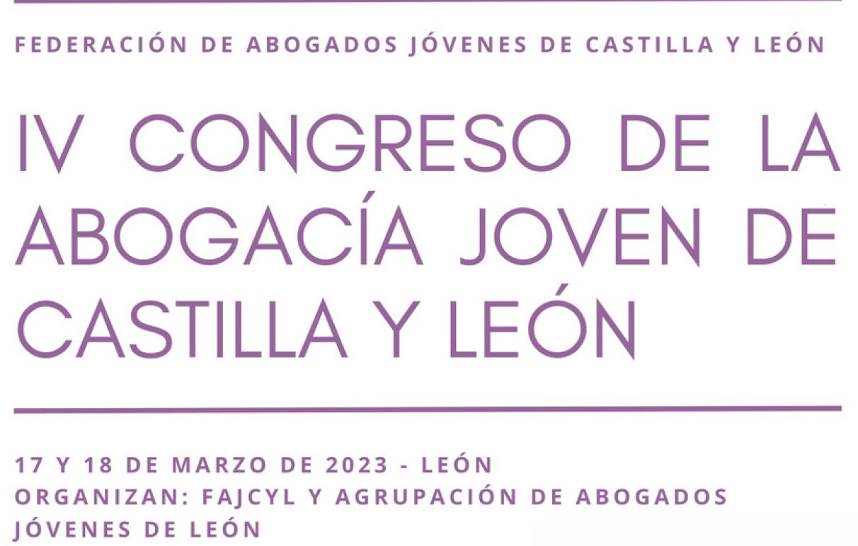 La Agrupación de Abogados Jóvenes de León en colaboración con la Federación de Abogados Jóvenes de Castilla y León celebran el ‘IV Congreso de la Abogacía Joven de Castilla y León’, los próximos 17 y 18 de marzo.