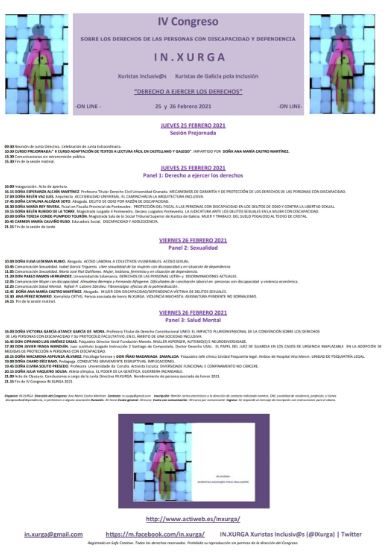 IV Congreso sobre las personas con discapacidad y dependencia organizado por la Asociación Juristas de Galicia por la Inclusión que tendrá lugar los días 25 y 26 de febrero.