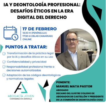 Jornada «Inteligencia Artificial y Deontología Profesional: Desafíos Éticos en la Era Digital del Derecho», organizada por la Confederación Española de la Abogacía Joven.
