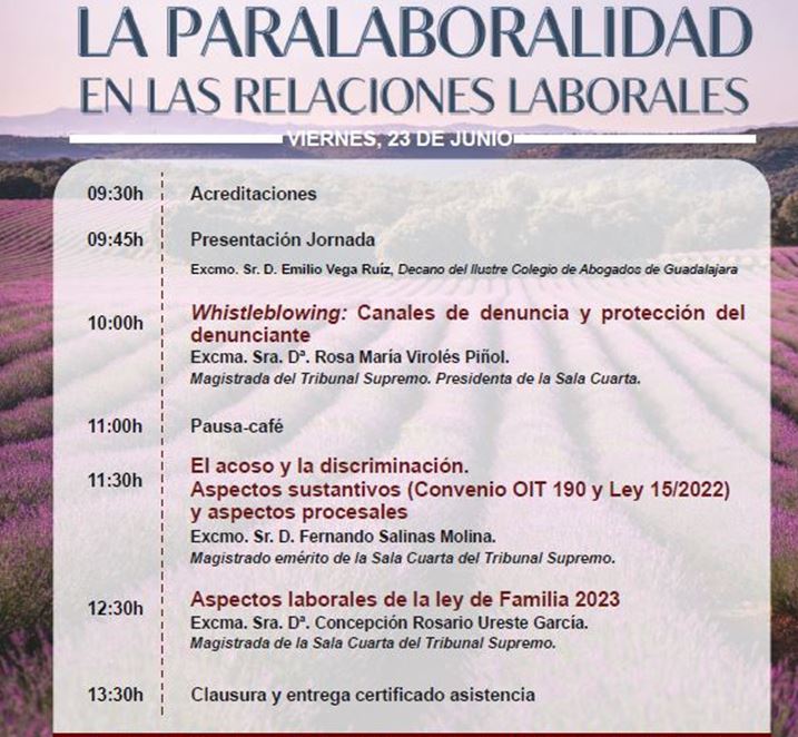 Jornada Laboral: La Paralaboralidad en las relaciones laborales, en el Colegio de Abogados de Guadalajara, en la que intervendrán como ponentes: