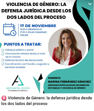 Jornada «Violencia de Género: la defensa jurídica desde los dos lados del proceso», organizada por la Confederación Española de la Abogacía Joven.