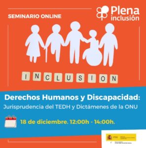 Seminario online: «Derechos Humanos y Discapacidad: Jurisprudencia del TEDH y Dictámenes de la ONU», organizado por Plena Inclusión.
