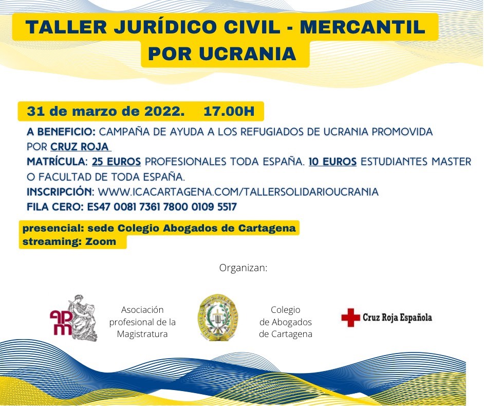 Inscripción: https://www.icacartagena.com/taller-juridico-civil-mercantil-por-ucrania/