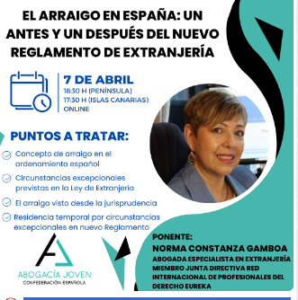 Webinar «El arraigo en España: un antes y un después del nuevo Reglamento de Extranjería», Confederación Española de la Abogacía Joven.
