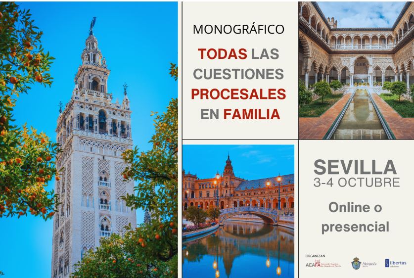 XXVIII Jornadas de Derecho de Familia Sevilla 2024, organizadas por la Asociación Española de Abogados de Familia-AEAFA-. La apertura correrá a cargo de Rafael Márquez Romero, presidente de la Audiencia Provincial y de la Sección 2ª de Familia de Sevilla; Óscar Fernández León, decano del Colegio de Abogados de Sevilla y María Dolores López Muelas-Vicente, presidenta de la AEAFA.