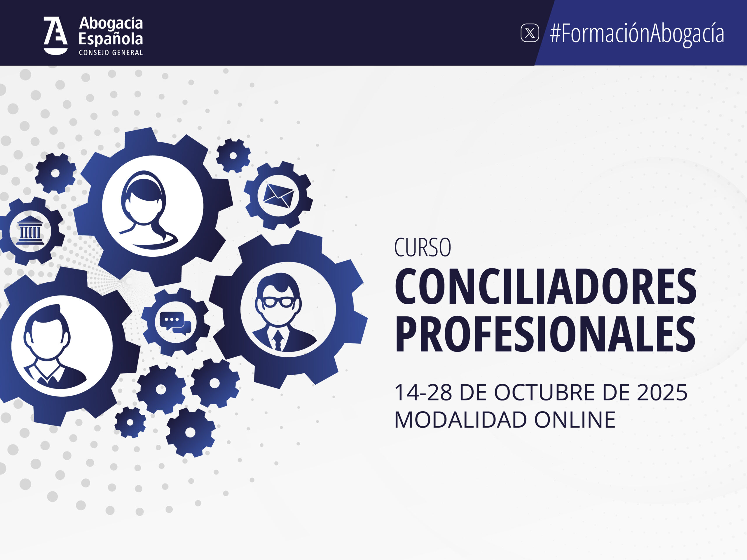El Consejo General de la Abogacía Española abre inscripciones para la primera edición del curso “Conciliadores profesionales”, que tendrá lugar del 14 al 28 de octubre en modalidad online.