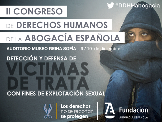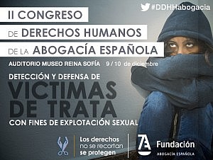 La Fundación Abogacía Española dedica su II Congreso de Derechos Humanos a la trata de personas con fines de explotación sexual. Durante dos días, el 9 y 10 de diciembre en el Auditorio del Museo Reina Sofia de Madrid, numerosos expertos se darán cita para analizar cúal debe ser el papel de los abogados y abogadas en la detección y defensa de las víctimas de trata con fines de explotación sexual.