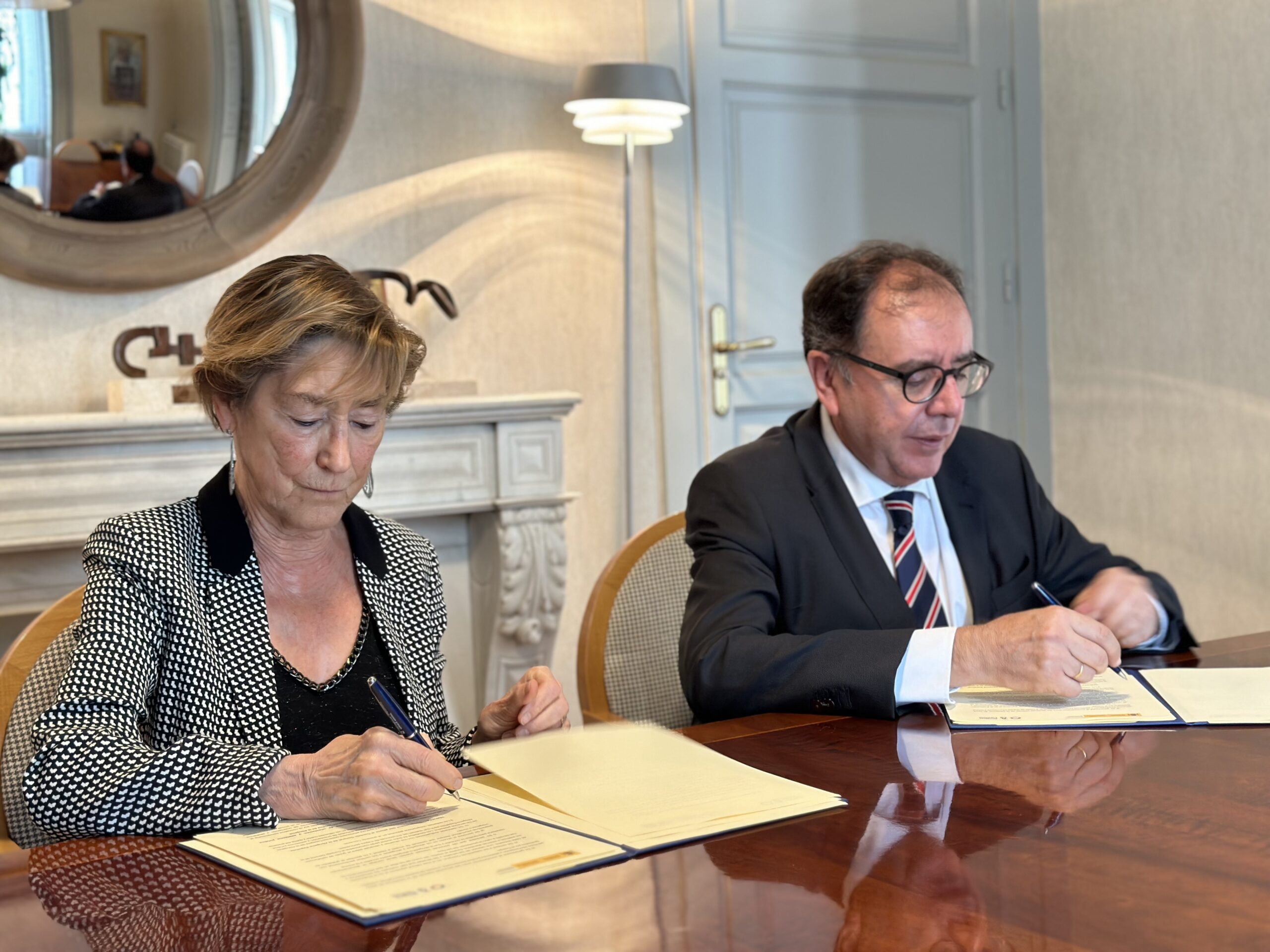 Victoria Ortega, presidenta del Consejo General de la Abogacía Española, y Ángel Luis Ortiz, secretario general de Instituciones Penitenciarias, han firmado hoy la renovación del convenio para la organización y prestación del servicio de orientación y asistencia jurídica a personas privadas de libertad en centros penitenciarios y de inserción social.