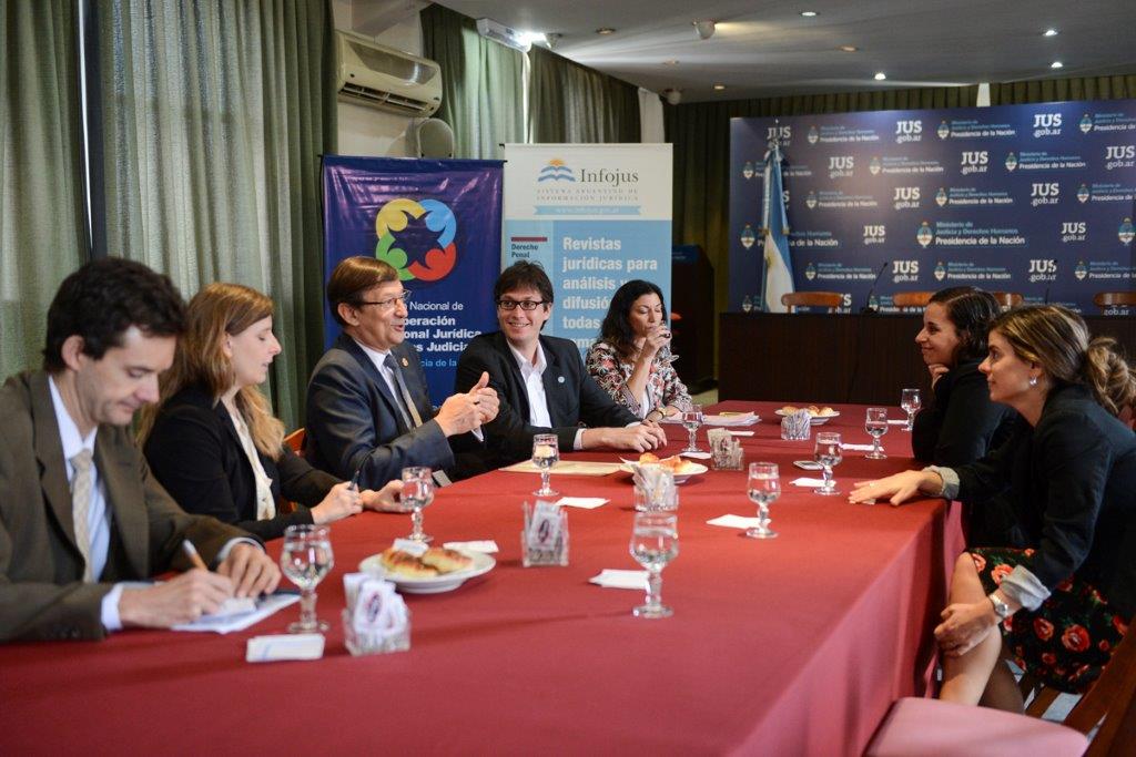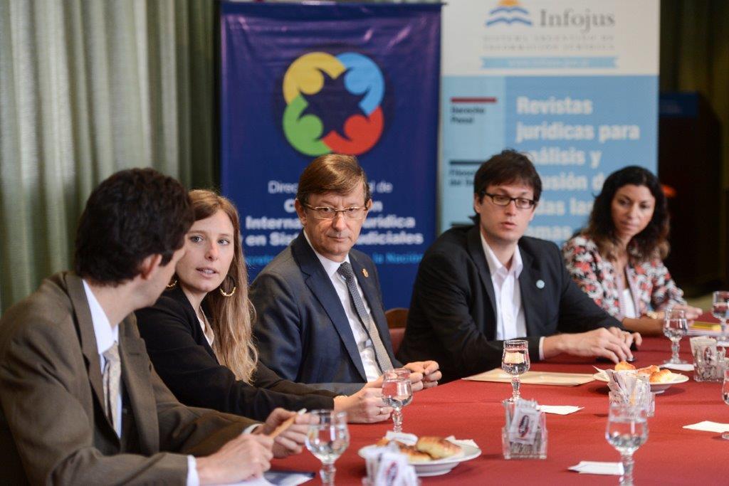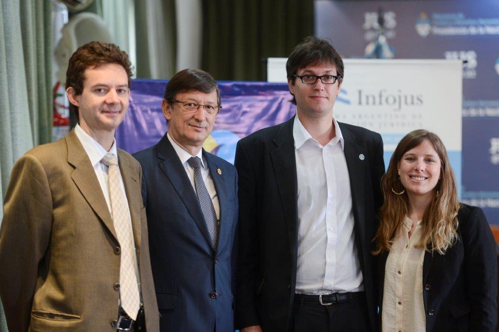 El acto, realizado en el Salón Pablo Ramella del Ministerio de Justicia, contó con la presencia del vicepresidente del Consejo General de la Abogacía Española, Pere Lluis Huguet Tous, del director de RedAbogacía-IT del Consejo General de la Abogacía Española, Francisco José López, del director nacional de Cooperación Internacional Jurídica y en Sistemas Judiciales, Sebastián Rey, y de la directora del Portal Infojus, Constanza Solari.