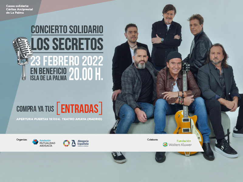 Este miércoles 23 de febrero se celebrará en Madrid el concierto solidario de Los Secretos, organizado por el Consejo General de la Abogacía y la Fundación Mutualidad Abogacía con el objetivo de recaudar fondos para las víctimas del volcán de La Palma.