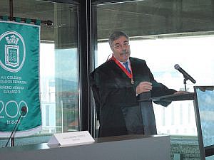 Fernando Azagra, miembro de la Junta de Gobierno del MICAP, ha pronunciado la laudatio de Alfredo Irujo, quien tras recibir la Gran Cruz ha dicho que se trataba de una distinción especialmente querida porque le ha sido concedida por sus compañeros, ya que ha sido el Colegio el que solicitó al Consejo su concesión. También ha mostrado su alegría por haber sido homenajeado junto a Juan Tomás Rodríguez, del que ha destacado su lealtad y sentido común. Irujo ha señalado además que no había hecho “nada especial” para ser merecedor de la condecoración y que se ha limitado a elegir la profesión e “ingresar en este Colegio, el mejor de España”, donde ha gozado de la amistad de sus compañeros.