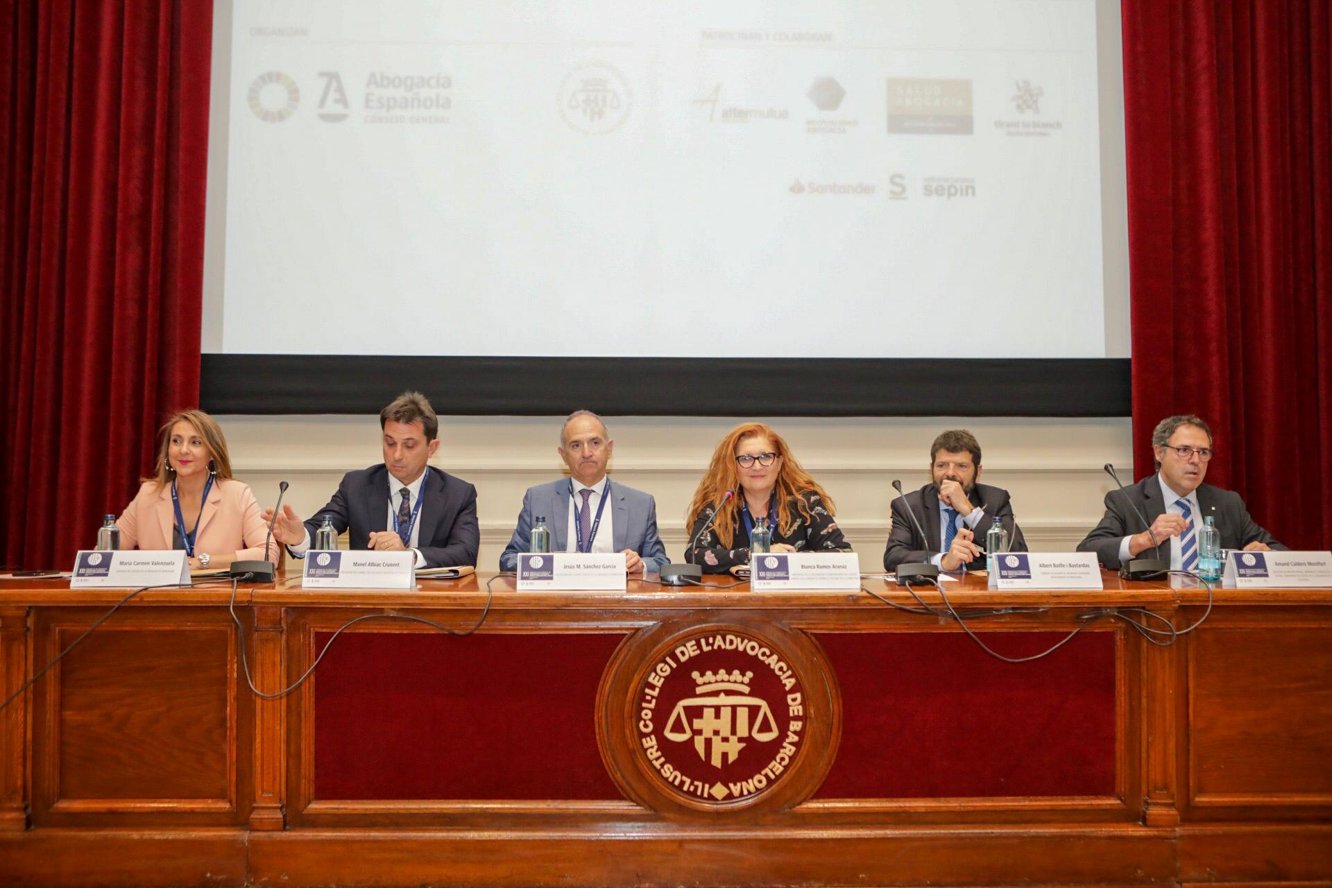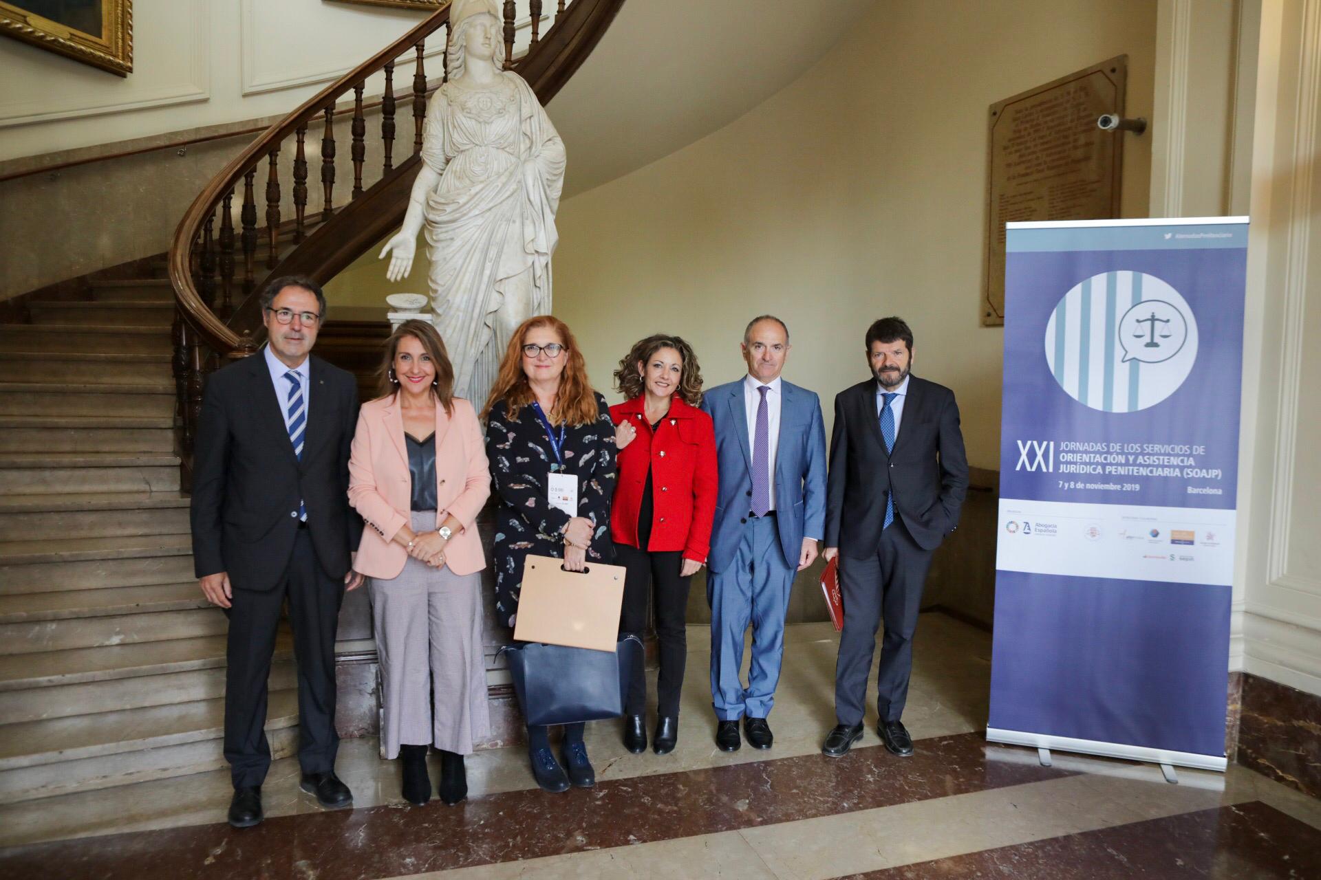 Las XXI Jornadas de los Servicios de Orientación y Asistencia Jurídica Penitenciaria han sido inauguradas por Blanca Ramos, presidenta de la Subcomisión de Derecho Penitenciario del Consejo General de la Abogacía Española y decana del Colegio de Abogados de Pamplona; Jesús Sánchez, secretario de la Junta de Gobierno del Colegio de la Abogacía de Barcelona; Carmen Valenzuela, diputada responsable de la Comisión de Derecho Penitenciario del ICAB, Albert Batlle, teniente de alcalde de Seguridad Ciudadana del Ayuntamiento de Barcelona; Manel Albiac, presidente del Consell de l’Advocacia Catalana y Amand Calderó Montfort, secretario de Medidas Penales, Reinserción y Atención a la víctima del departamento de Justicia de la Generalitat.