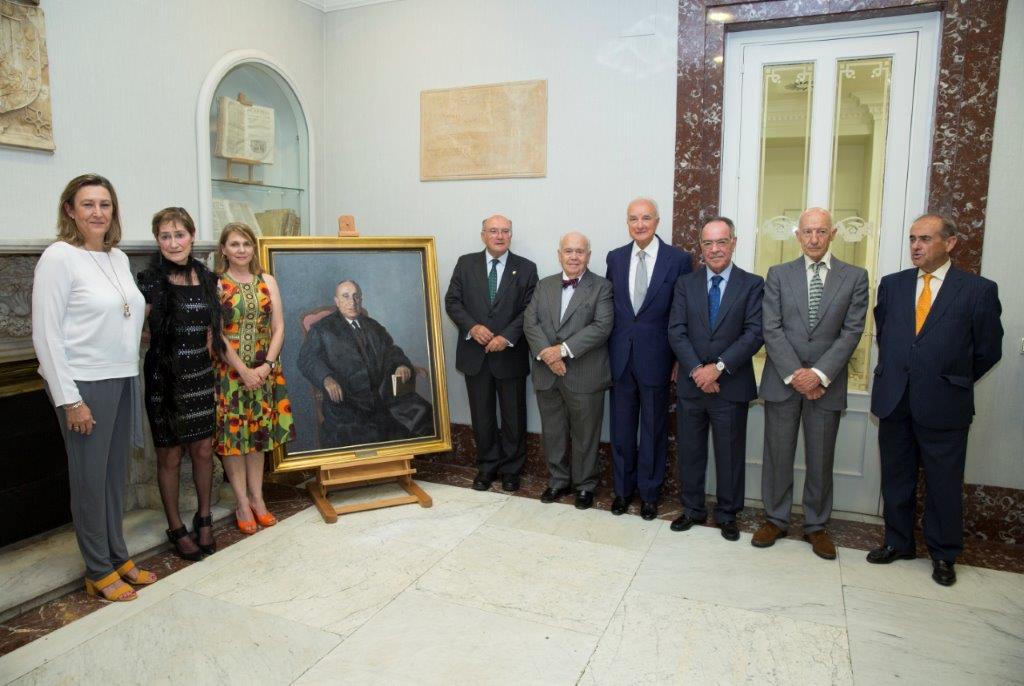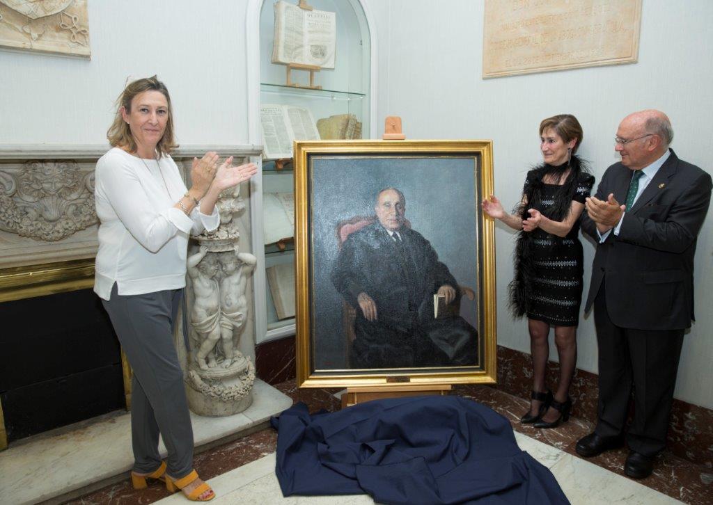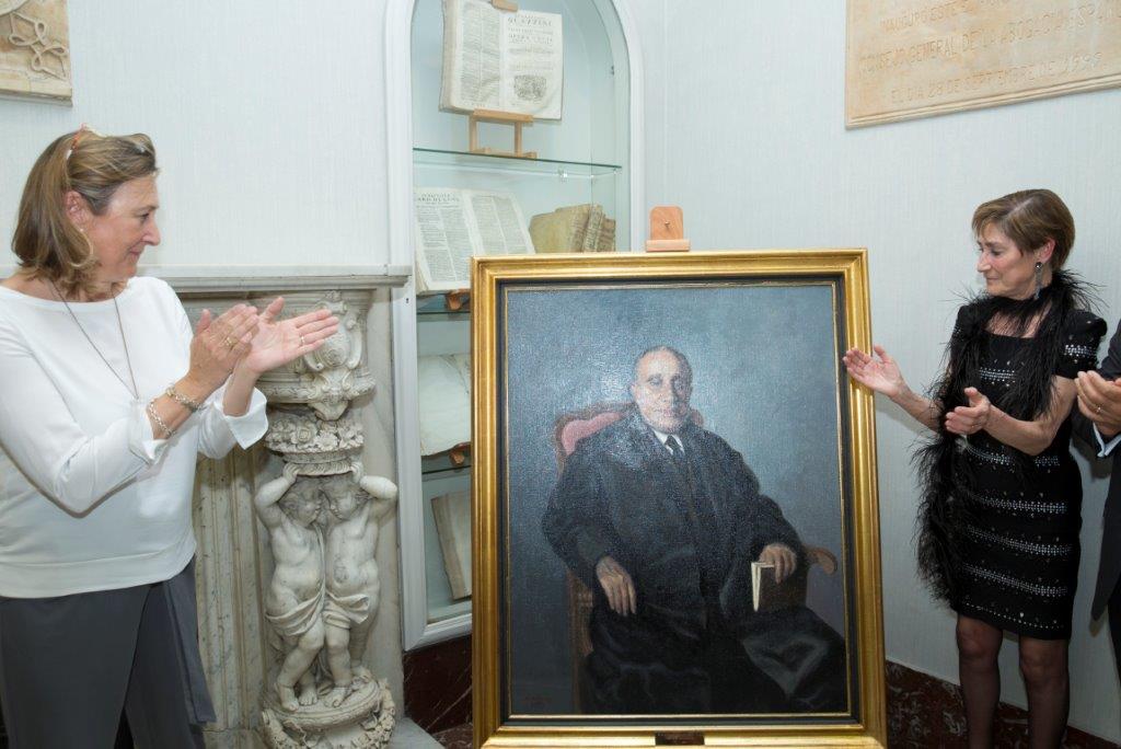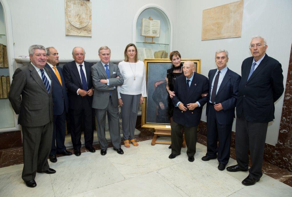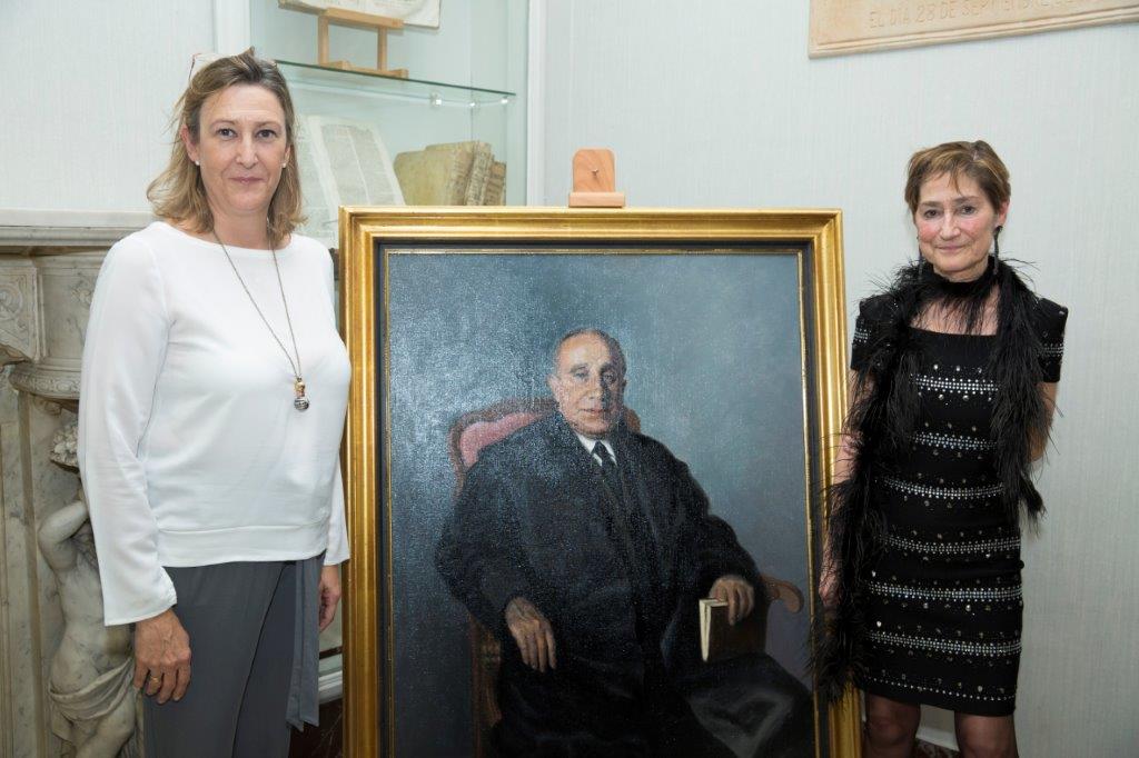 El óleo de Adela Acitores está inspirado en el cuadro que -obra del pintor sevillano Enrique Segura- forma parte de la galería de decanos que existe en la sede del Colegio de Abogados de Madrid, en la sede de la calle Serrano 9.