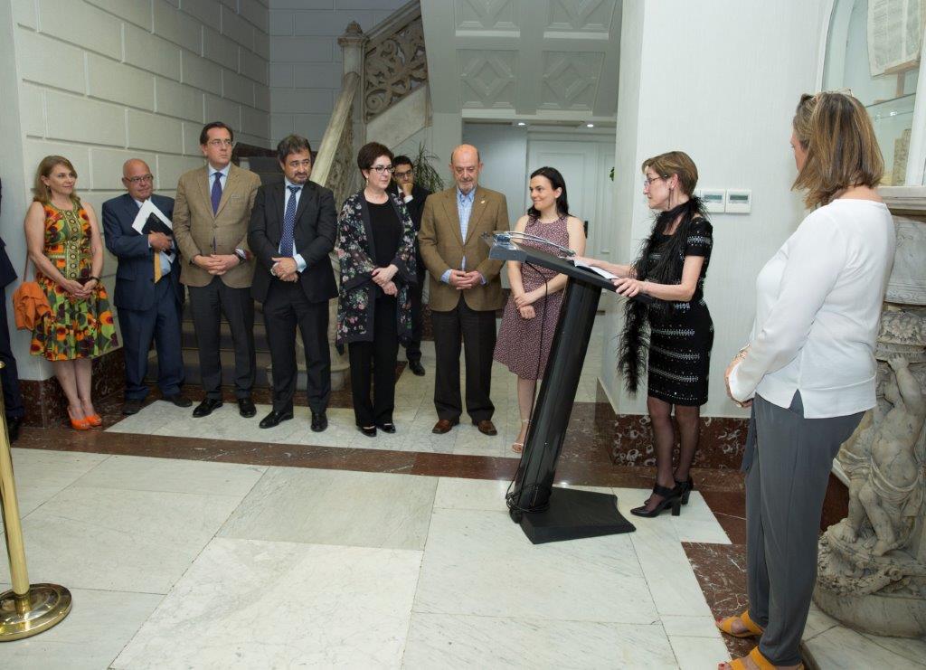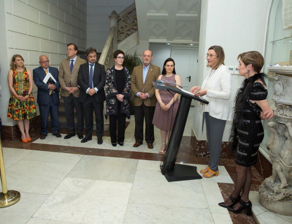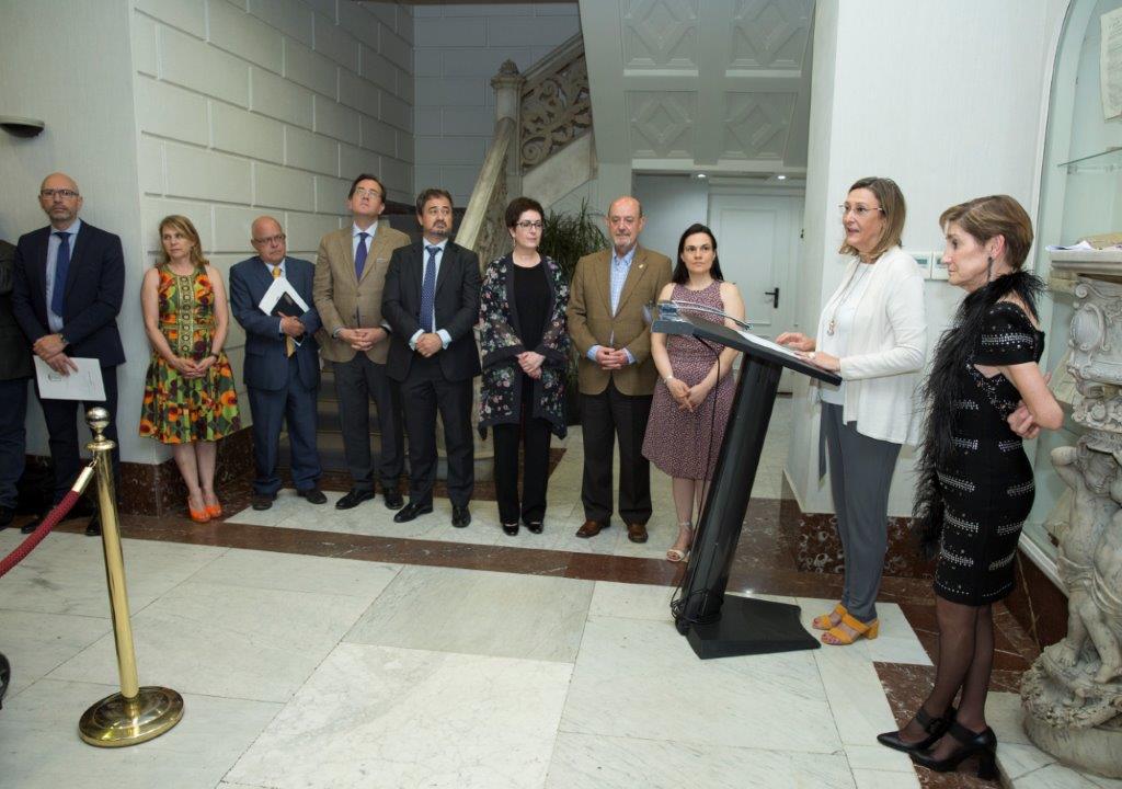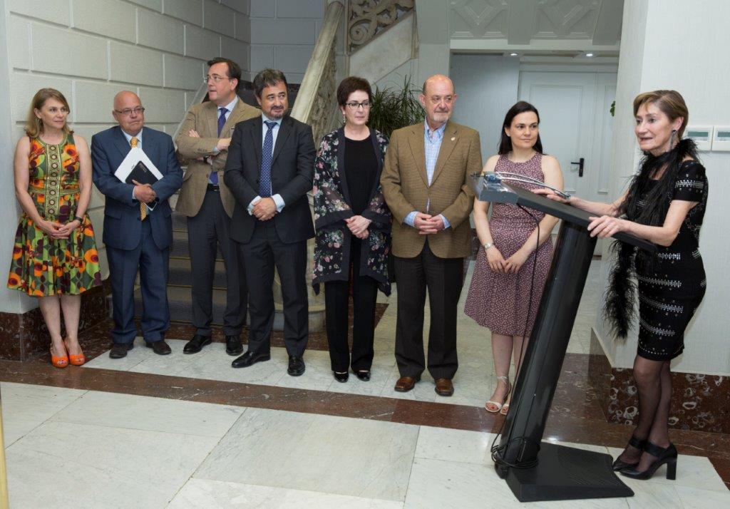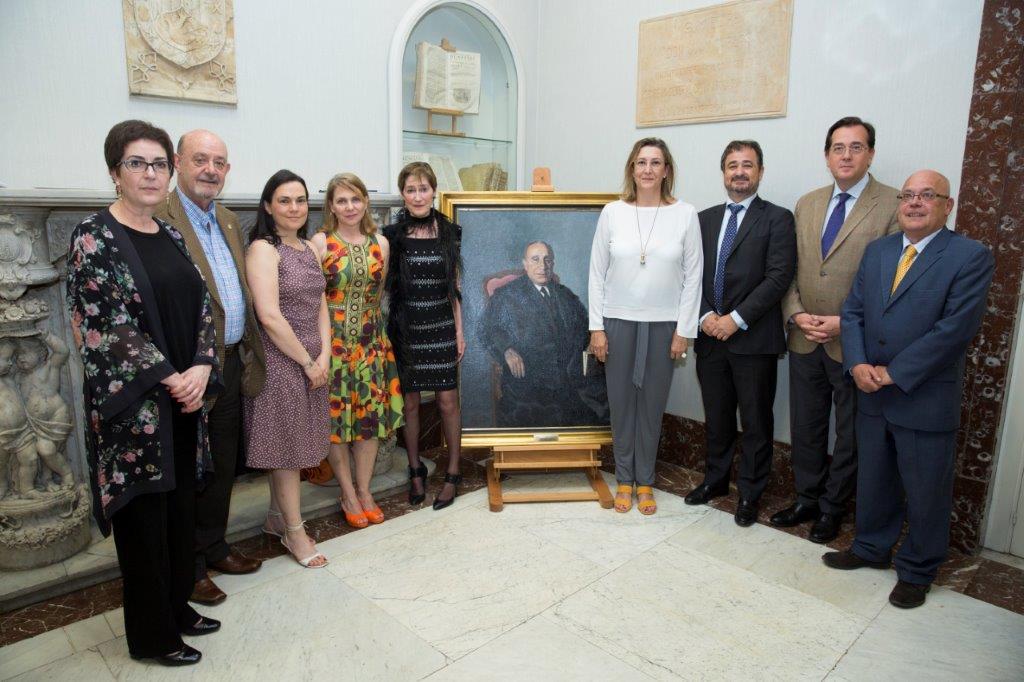 El óleo de Adela Acitores está inspirado en el cuadro que -obra del pintor sevillano Enrique Segura- forma parte de la galería de decanos que existe en la sede del Colegio de Abogados de Madrid, en la sede de la calle Serrano 9.