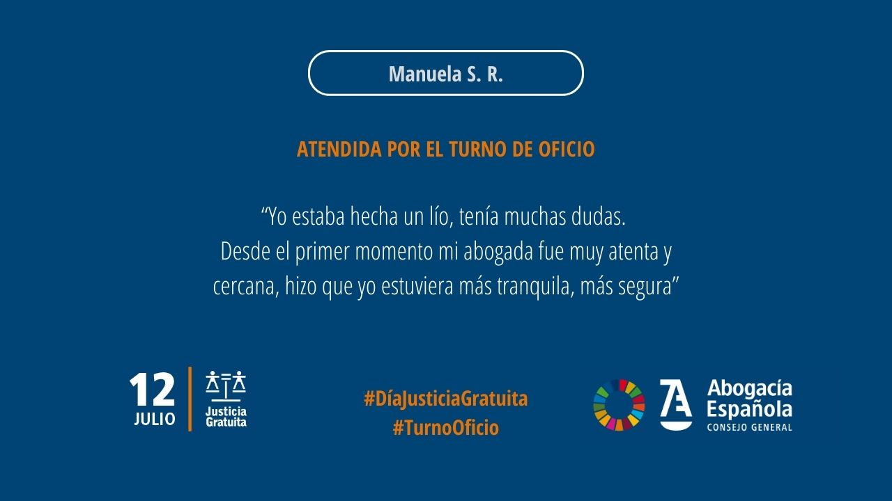 “Me enteré de que podía acceder al servicio del turno de oficio en los juzgados. Desde el primer momento mi abogada fue muy atenta. Yo estaba hecha un lío y me aclaró todas mis preguntas de una manera que lo comprendiera bien, para que yo estuviera más tranquila”.