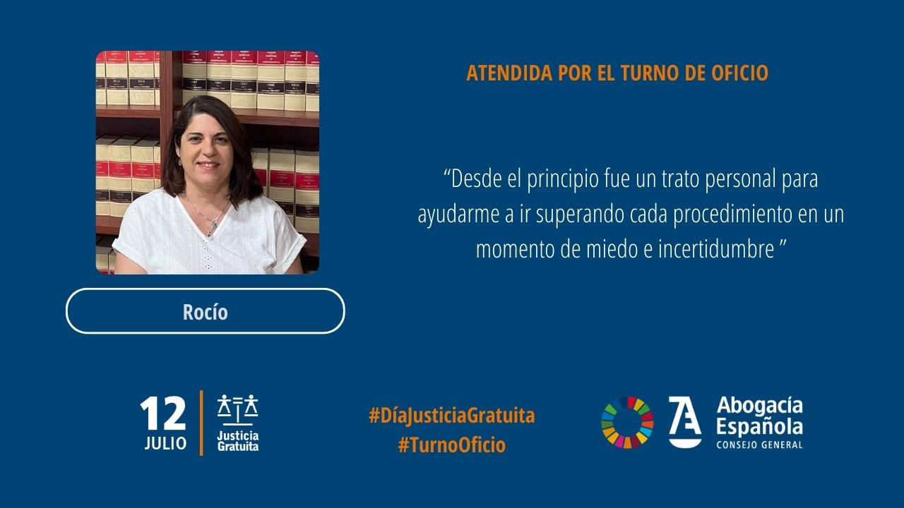 Rocío, de 50 años, que vive en Marbella, fue asistida hace 10 años por el turno de oficio por ser víctima de violencia de género. Su abogada, Encarnación Moreno Muñoz, lleva en el turno más de 20 años y llevó también el divorcio y la liquidación de la sociedad de gananciales.