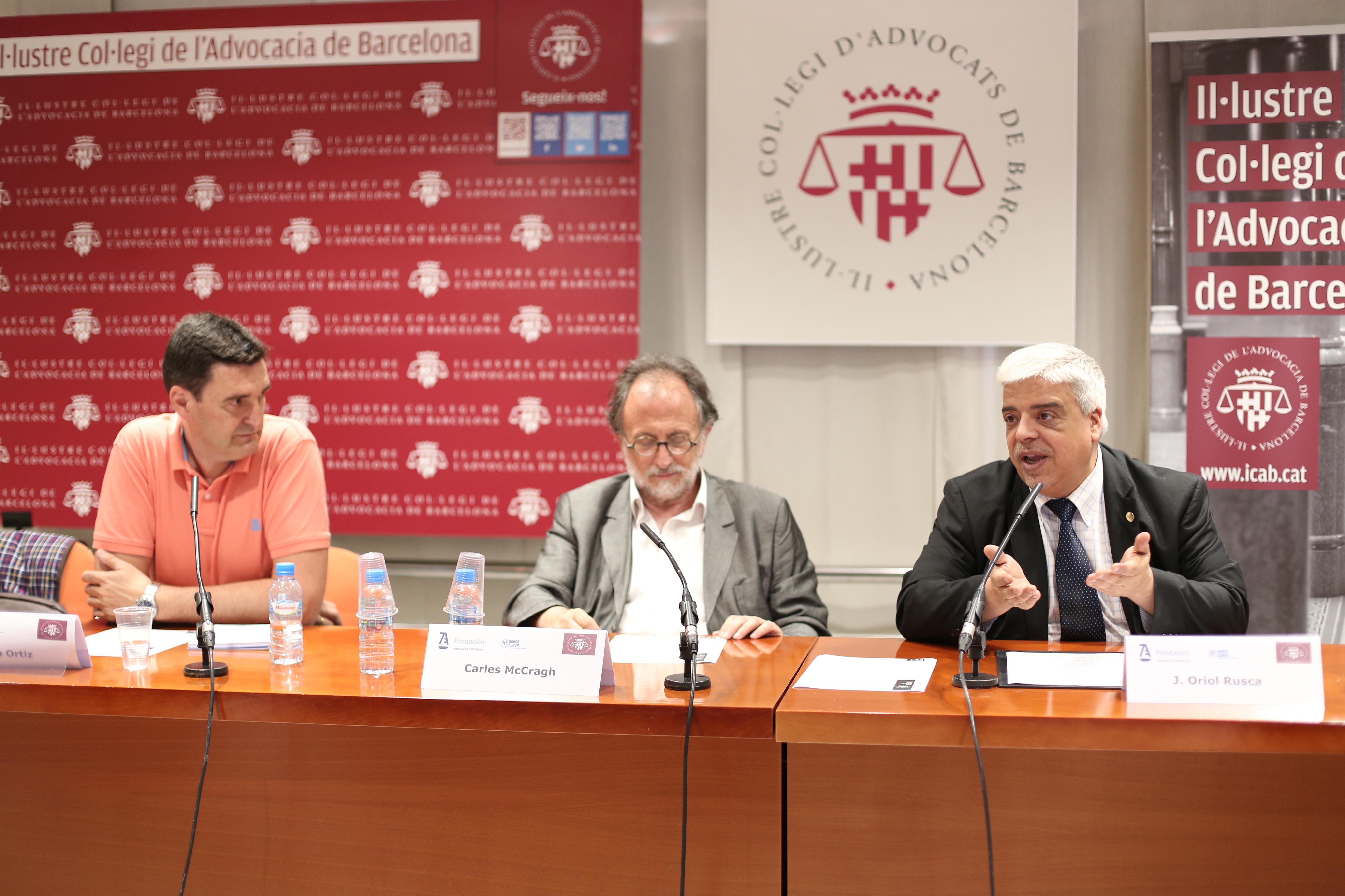 El decano del ICAB ha inaugurado esta jornada junto con Carles McCragh, vicepresidente de la Fundación Abogacía Española y decano del Colegio de Abogados de Girona, y Francisco Ortiz, Oficial de Protección de ACNUR (Alto Comisionado de las Naciones Unidas para los Refugiados). Francisco Ortiz, también ponente de la jornada, ha explicado las funciones de esta organización, en qué consiste la convención de Ginebra de 1951 y ha denunciado que a raíz de diversos conflictos existentes hay actualmente más de 65 millones de personas desplazadas y refugiadas.
