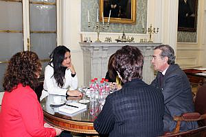 El decano José María Alonso ha recibido hoy en la sede del Colegio de Abogados de Madrid a la portavoz del grupo Ciudadanos en el Ayuntamiento de la capital, Begoña Villacís. Con este encuentro, al que también han asistido la vicedecana Begoña Castro y la diputada Mabel Zapata, Villacís ha querido poner en valor la importancia que tiene el Colegio, con sus más de 77.000 colegiados, para la ciudad de Madrid.