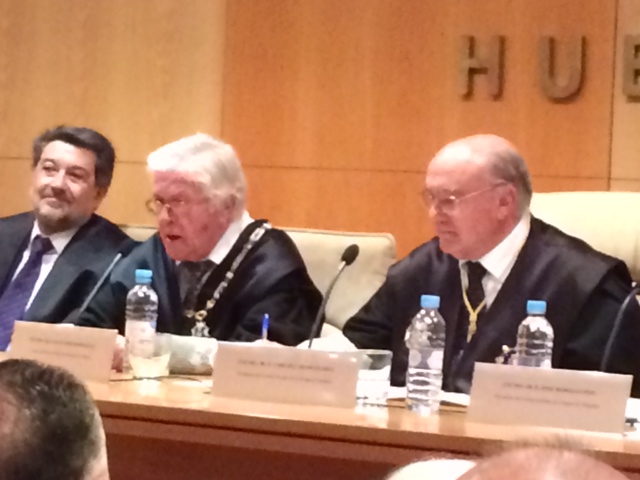 Carnicer, además, acudió a la imposición de la Cruz de Honor de San Raimundo de Peñafort, patrón de los juristas, al abogado onubense Juan José Domínguez, decano del colegio de abogados de Huelva. Esta condecoración supone un reconocimiento a sus más de cincuenta años de trabajo en colegio de Huelva. Domínguez estuvo arropado por muchos compañeros, que abarrotaron el salón de actos del colegio.