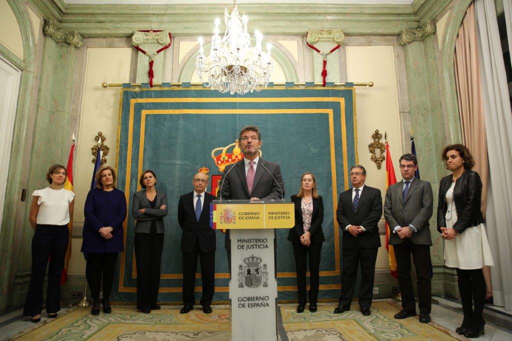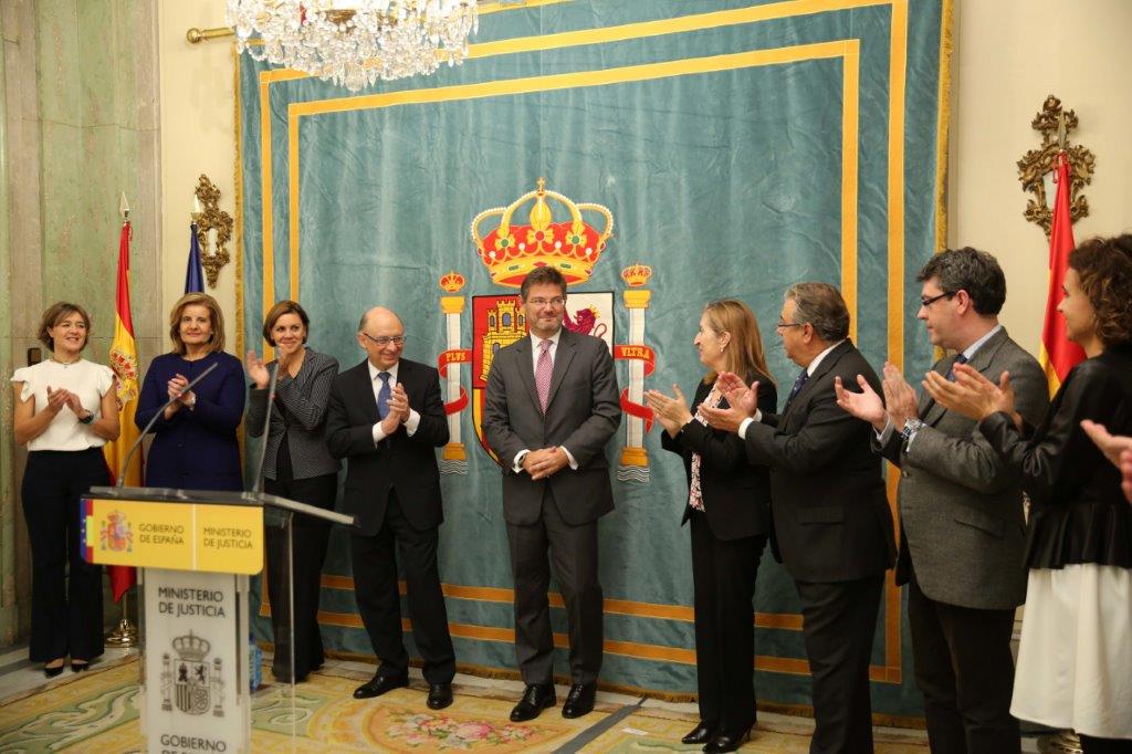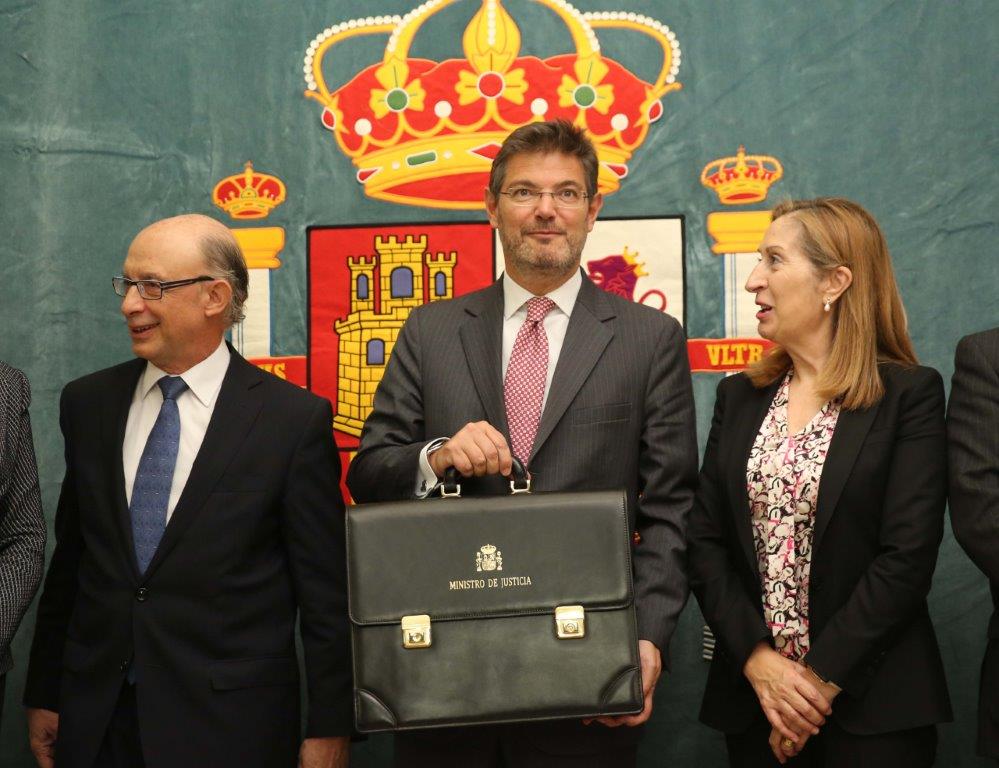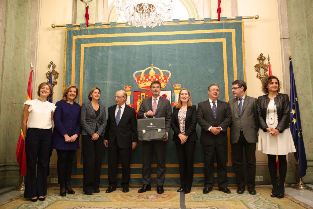 El responsable del Departamento Justicia, Rafael Catalá, fue el último ministro del Gobierno de Mariano Rajoy en tomar posesión; pero lo hizo a lo grande, respaldado por la ministra de Defensa, María Dolores de Cospedal, el ministro de Hacienda, Cristóbal Montoro, la ministra de Agricultura, Isabel García Tejerina, la ministra de Sanidad, Dolors Montserrat, el ministro del Interior, Juan Ignacio Zoido, la ministra de Empleo y Seguridad Social, Fátima Báñez, el ministro de Energía Turismo y Agenda Digital, Álvaro Nadal, y la presidenta del Congreso de los Diputados, Ana Pastor.