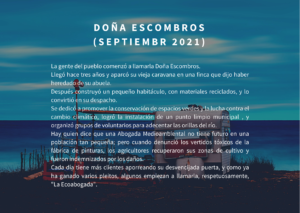 El microrrelato promueve el cuidado del medioambiente, de las ciudades y la naturaleza, y todo ello de la mano de una abogada, «La Ecoabogada». «Quería que fuese una historia de superación, ya que a mí me gusta mucho escribir relatos sentimentales, por lo que siempre intento ir por ese terreno».