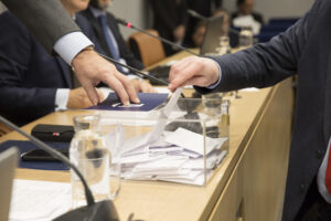 En caso de celebrarse segunda o tercera votación, aquellos decanos que no asistan al pleno o asistan de manera telemática, tendrán que delegar nuevamente su voto, mediante comunicación fehaciente al Secretario General del Consejo.