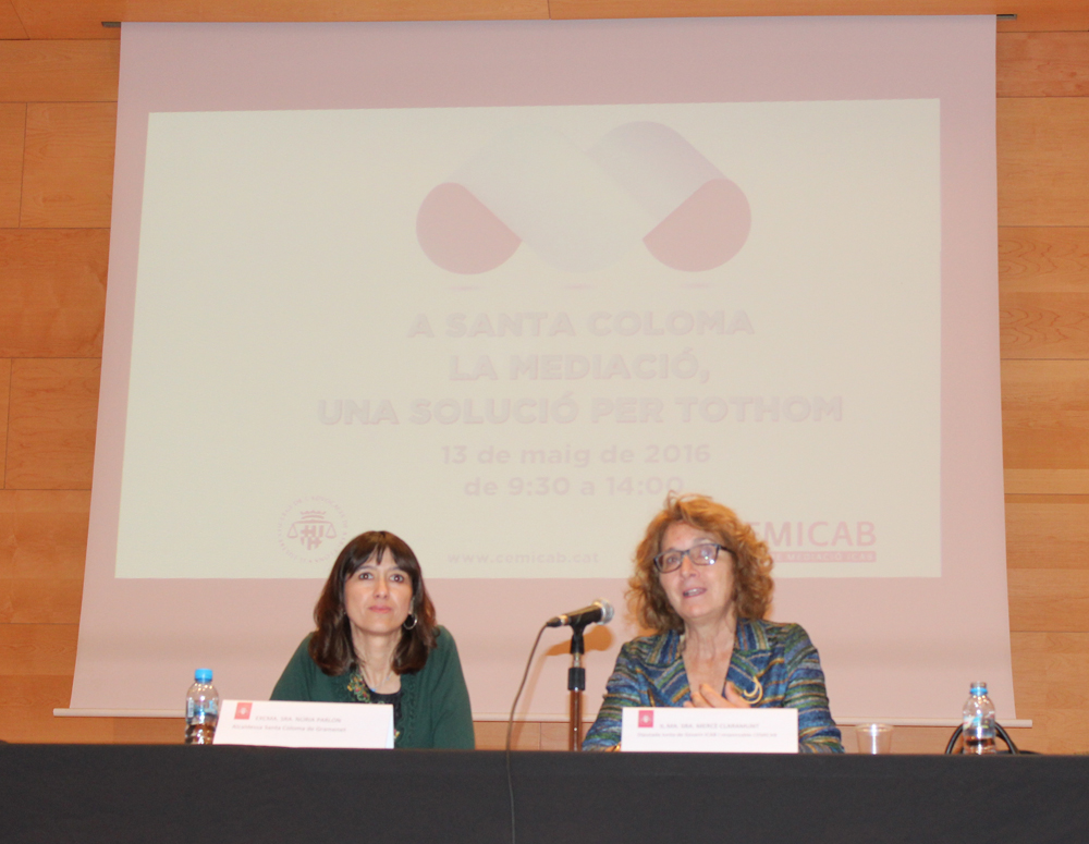 Precisamente la diputada responsable del CEMICAB ha inaugurado esta mañana junto con la alcaldesa de Santa Coloma, Núria Parlon, la jornada «En Santa Coloma la mediación, una solución para todos«.
