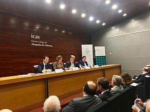 El salón de actos del Colegio de Abogados de Valencia ha acogido una nueva jornada de ponencias, enmarcada dentro del Ciclo de Conferencias de la Real Academia Valenciana de Jurisprudencia y Legislación 2018. En esta ocasión, el tema principal ha sido las “Cláusulas abusivas”. Un asunto de rigurosa actualidad que se ha debatido en una mesa redonda con la participación del director de Servicios Jurídicos Real Estate BBVA, Rafael Sanz; el registrador de la Propiedad, notario, letrado de la Dirección General de los Registros y del Notariado y catedrático de Derecho Civil, Juan María Díaz; y la magistrada del Juzgado de Primera Instancia 4 de Castellón y profesora titular de Derecho, Carolina del Carmen Castillo.