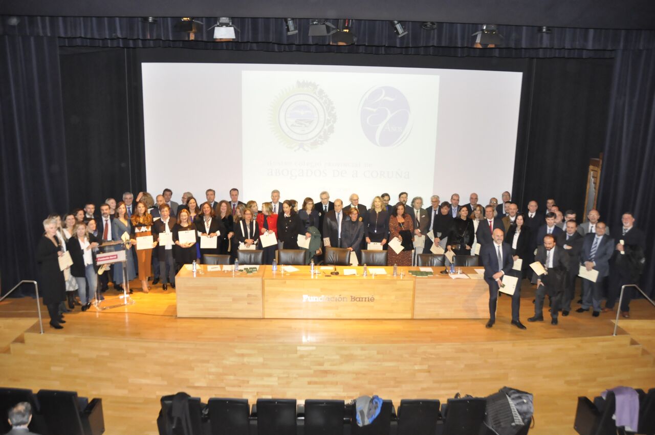 A continuación, ha tenido lugar el Acto Solemne en la Fundación Barrié en el que se ha procedido a la entrega de diplomas e Insignia Colegial a los abogados que han ejercido durante 25 años. A este acto ha asistido la Junta de Gobierno del Colegio de Abogados junto a una gran representación de autoridades y representantes de instituciones vinculadas a la Justicia como el Presidente TSJG, el Fiscal Superior de Galicia, Magistrados de TSJG y Jueces Audiencia Provincial y Juzgados, entre otros.