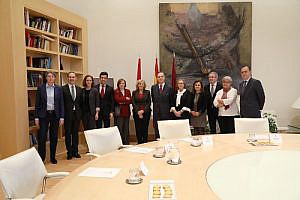 La Junta de Gobierno del Colegio de Abogados de Madrid, con el decano José María Alonso a la cabeza, se ha reunido esta mañana en la sede del Ayuntamiento de Madrid con la alcaldesa Manuela Carmena y la primera teniente de alcalde Marta Higueras. Los representantes de la abogacía madrileña han trasladado a la responsable del consistorio madrileño un documento de propuestas centrado en dos cuestiones: promover la formación en Derechos Humanos entre los jóvenes de la capital y facilitar los desplazamientos de los letrados del Turno de Oficio durante sus guardias para atender las asistencias a detenidos.