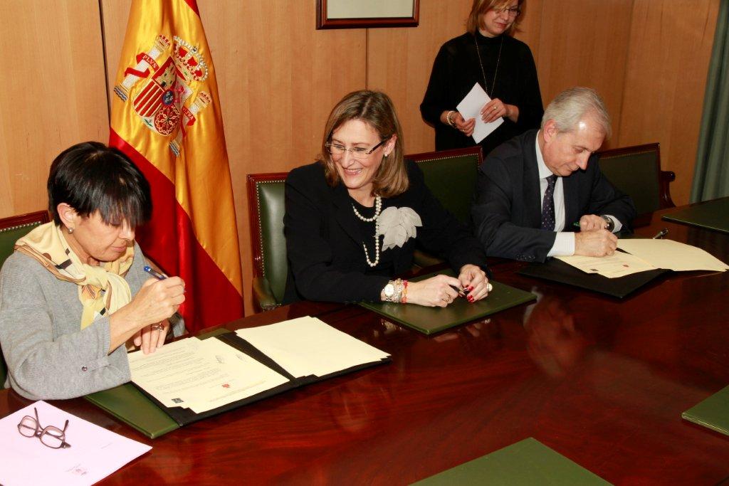 Los vocales del Consejo General del Poder Judicial, Margarita Uría y Antonio Dorado, y la decana del Colegio de Abogados de Madrid, Sonia Gumpert, han suscrito esta tarde un convenio de colaboración en materia de implantación de la mediación intrajudicial en los juzgados de la ciudad de Madrid.