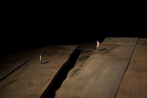 Antonio Lanas tituló su fotografía ‘Abismo’, y refleja una escultura de Javier Poveda que muestra a dos personas separadas por una grieta. La decana del Colegio de Abogados de Pamplona, Blanca Ramos, dijo de ella que representa muy bien “la fractura y las luces y sombras que los abogados vemos cuando realizamos nuestro trabajo”.
