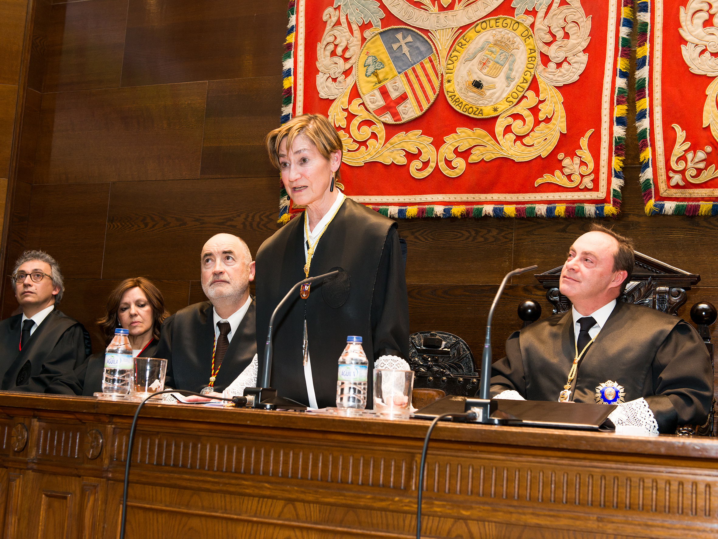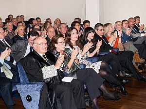 En primera fila estuvieron su mujer María Ángeles Cañada, y sus hijas Marian y Clara Carnicer, junto a su socio Fernando Zamora y autoridades como el Justicia de Aragón, Fernando García Vicente; el alcalde, el abogado Pedro Santisteve; los magistrados Manuel Bellido y Julio Arenere, y el juez decano de Zaragoza, Ángel Dolado. También hubo representantes de otros colegios, como el Notarial, con su decano, Francisco Pizarro; Pilar Palazón, de los Registradores de la Propiedad, e Isabel Pedraja, de Procuradores.