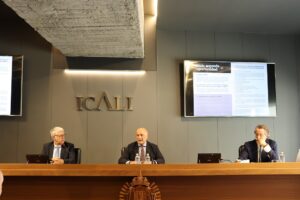 El acto ha estado presidido por el decano del ICALI, Fernando Candela Martínez, acompañado del presidente de la Sección de Derecho Concursal y diputado 5º de la Junta de Gobierno del Colegio, Luis Fernando Alonso Saura, y el abogado y miembro de la Sección de Abogados Especialistas en Derecho Concursal, Juan Antonio Sánchez Cantos.