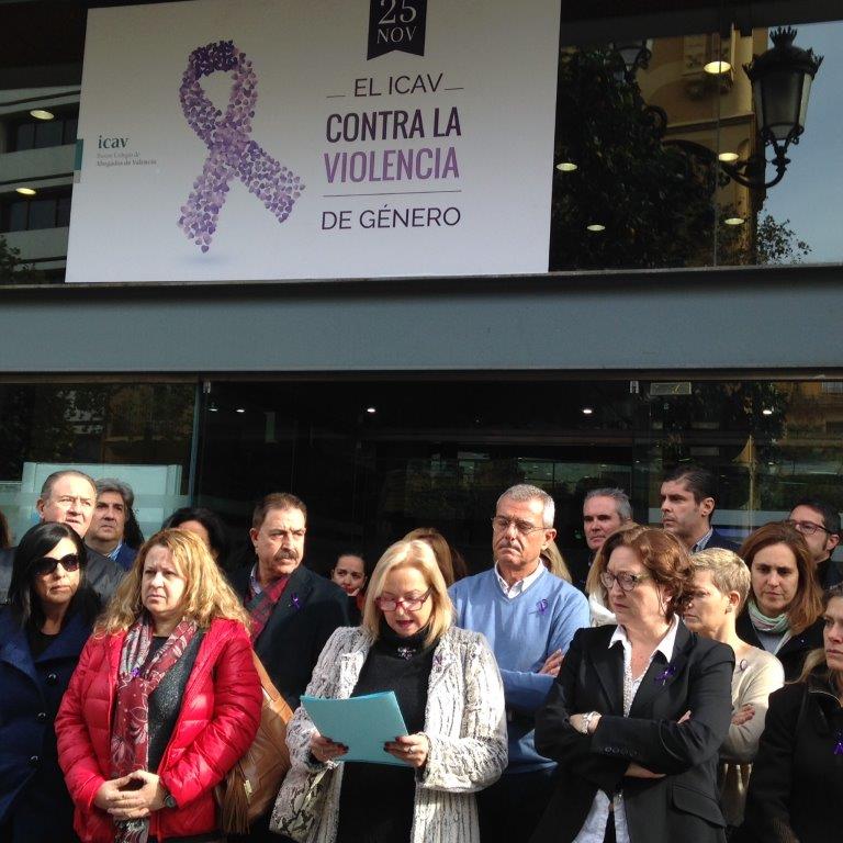 El Colegio de Abogados de Valencia ha celebrado el 25 de noviembre una concentración con motivo del día Internacional de la Eliminación de la Violencia Contra la Mujer. Durante el acto, Alicia Bayarri, presidenta de la Sección de Violencia Doméstica del ICAV, ha leído un manifiesto de repulsa a la violencia de género y ha recordado los nombres de todas las mujeres asesinadas a manos de sus parejas este año. Posteriormente se ha guardado un minuto de silencio.