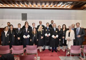 Durante el acto estuvieron presentes autoridades del sector jurídico como Juan Luis Lorenzo Bragado, presidente del Tribunal Superior de Justicia de Canarias (TSJC) o Carla Vallejo Torres, viceconsejera de Justicia del Gobierno de Canarias.