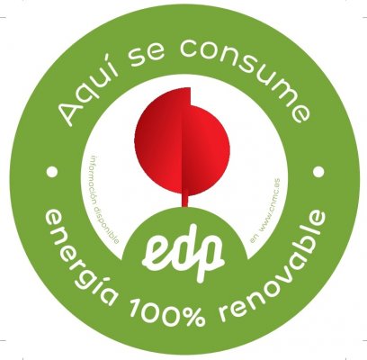 procede al 100% de fuentes renovables, tal y como acredita su suministrador, EDP, el cual está a su vez avalado por la Comisión Nacional del Mercado de la Competencia como compañía que suministra energía verde.