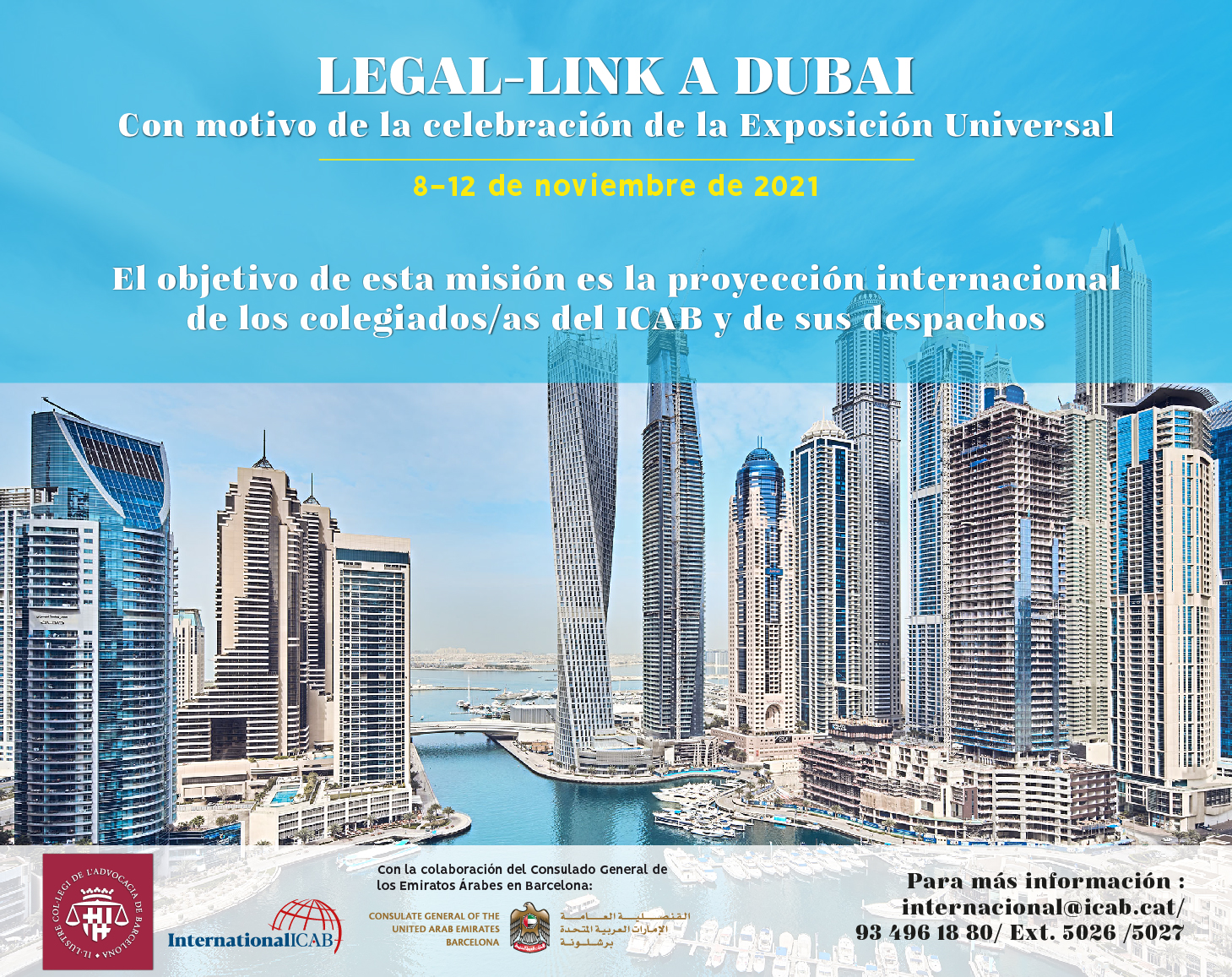Lo que se pretende con esta iniciativa es la proyección internacional de los colegiados y colegiadas del ICAB y de sus despachos. Además, se podrán crear oportunidades de negocio de los colegiados con los Emiratos Árabes Unidos (EAU).