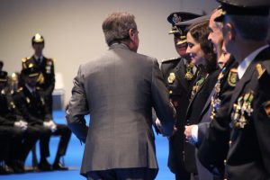 Tras las intervenciones del Jefe Superior de Policía de Madrid, Jorge Manuel Martí Rodríguez, y la Delegada del Gobierno en Madrid, María Paz García-Vera,se ha procedido a la entrega de condecoraciones y distinciones, haciéndose entrega de una placa al Colegio de Abogados de Madrid en agradecimiento por su colaboración con la Jefatura Superior.