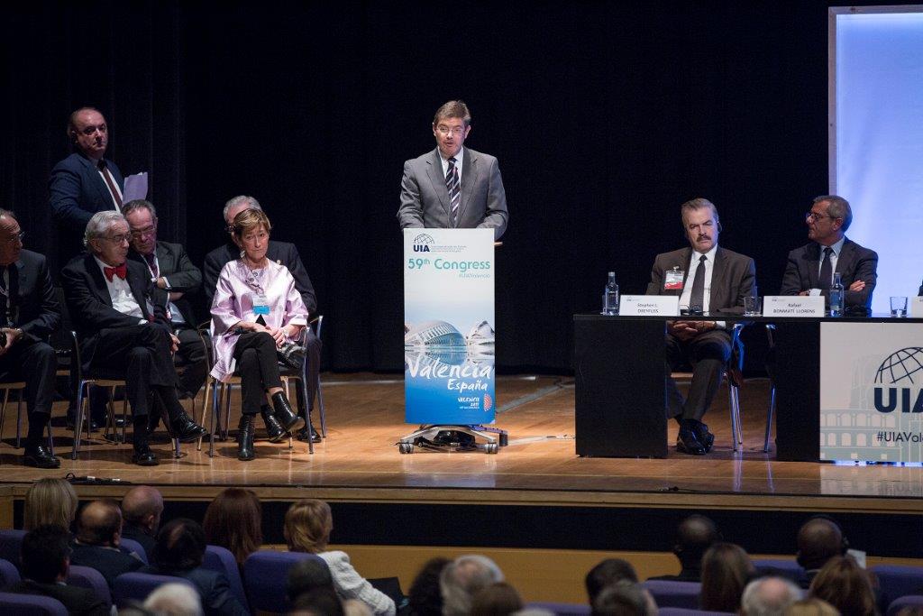 El ministro de Justicia, Rafael Catalá, ha reconocido de forma expresa -durante la inauguración del 59 Congreso de la Unión Internacional de Abogados (UIA) celebrado en Valencia- la labor de Carlos Carnicer, presidente del Consejo General de la Abogacía Española, por «su trabajo y su extraordinario proceso de liderazgo y dirección de los abogados».