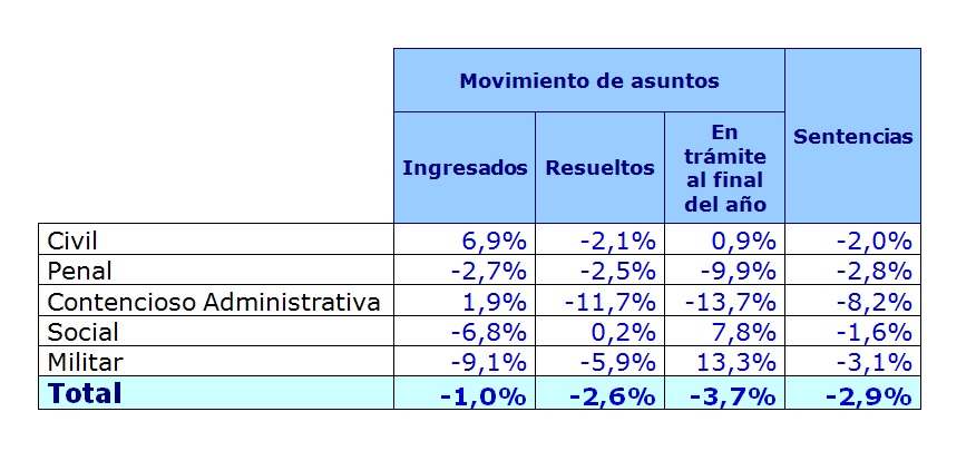 El número de asuntos ingresados en los tribunales cae un 2,7 % en el segundo trimestre del año respecto a 2013