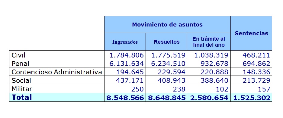 Por jurisdicciones, el número de asuntos ingresados en la Civil alcanzó los 481.432, un 7,2 % más que en el segundo trimestre de 2013. Los asuntos resueltos fueron 500.190 y los que quedaban en trámite al final del periodo estudiado 998.283.
