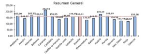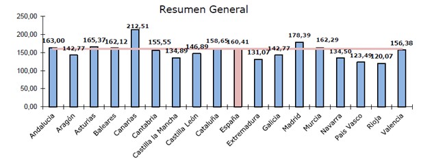 La tasa de litigiosidad en España fue de 160,41 asuntos por cada 1.000 habitantes en 2024. Canarias lideró con 212,51, seguida de Madrid (178,39), Asturias (165,37), Andalucía (163), Murcia (162,29) y Baleares (162,12).