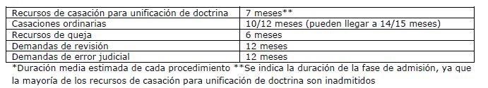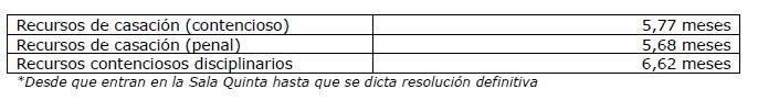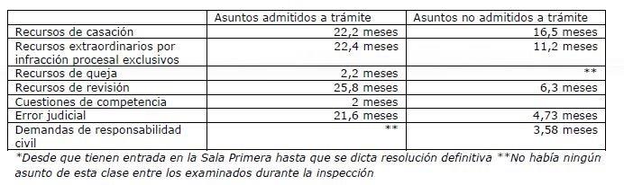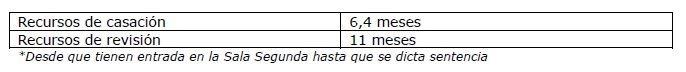 Dada la distinta naturaleza de los asuntos que examina cada Sección, no es posible ofrecer una duración media de los procedimientos, que en el caso de los recursos en única instancia oscila entre los 10,8 y los 23,3 meses.
