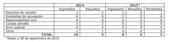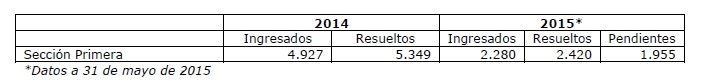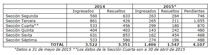 A continuación se indica el movimiento de asuntos en el resto de las Secciones, que resuelven sobre los previamente admitidos a trámite por la Sección Primera.