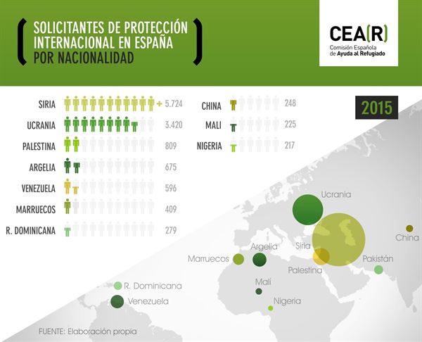 Además, explica que aunque el número de peticiones se triplicó, la protección se redujo: se concedió el estatuto de refugiado a 220 personas, frente a las 384 que la obtuvieron en 2014; y se dio protección subsidiaria –asistencia similar pero de carácter temporal– a otras 800, cuando en 2014 la recibieron 1.199.