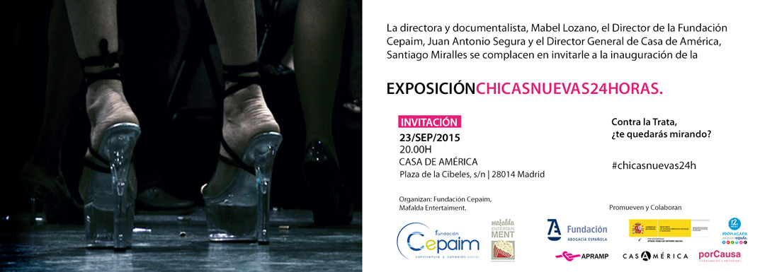 Del 23 al 28 de Septiembre se podrá visitar en Casa América Madrid la exposición del proyecto Chicas Nuevas 24 Horas, de Mabel Lozano. Esta exposición está compuesta por una interesante selección de fotogramas obtenidos a través del viaje-rodaje de la película que van más allá de su valor fotográfico ya que llegan al corazón de un mundo clandestino y muestran el proceso de cosificación del ser humano en el negocio de la trata. Esta muestra podrá ser visitada por grupos de diferentes colectivos y centros educativos mediante visitas guiadas en horario de mañana, de 10 a 14 horas y tras reserva previa.